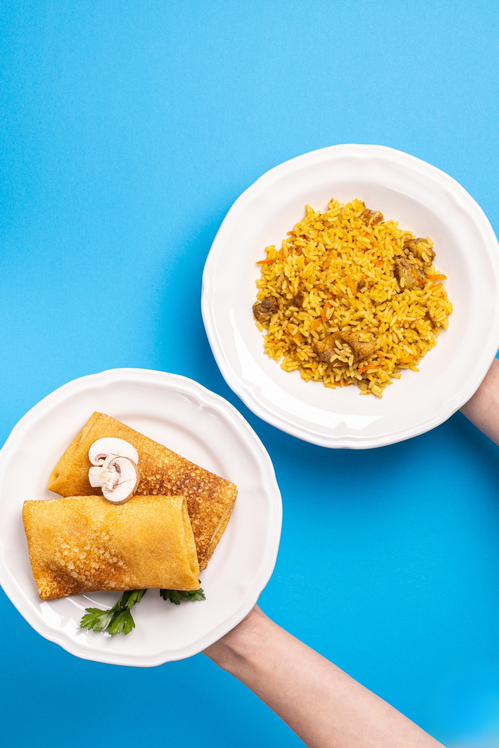 Goldbraune Blinis mit einer Füllung aus saftigem Hähnchenfleisch und aromatischen Pilzen. Perfekt für einen schnellen und köstlichen Snack oder eine sättigende Mahlzeit.