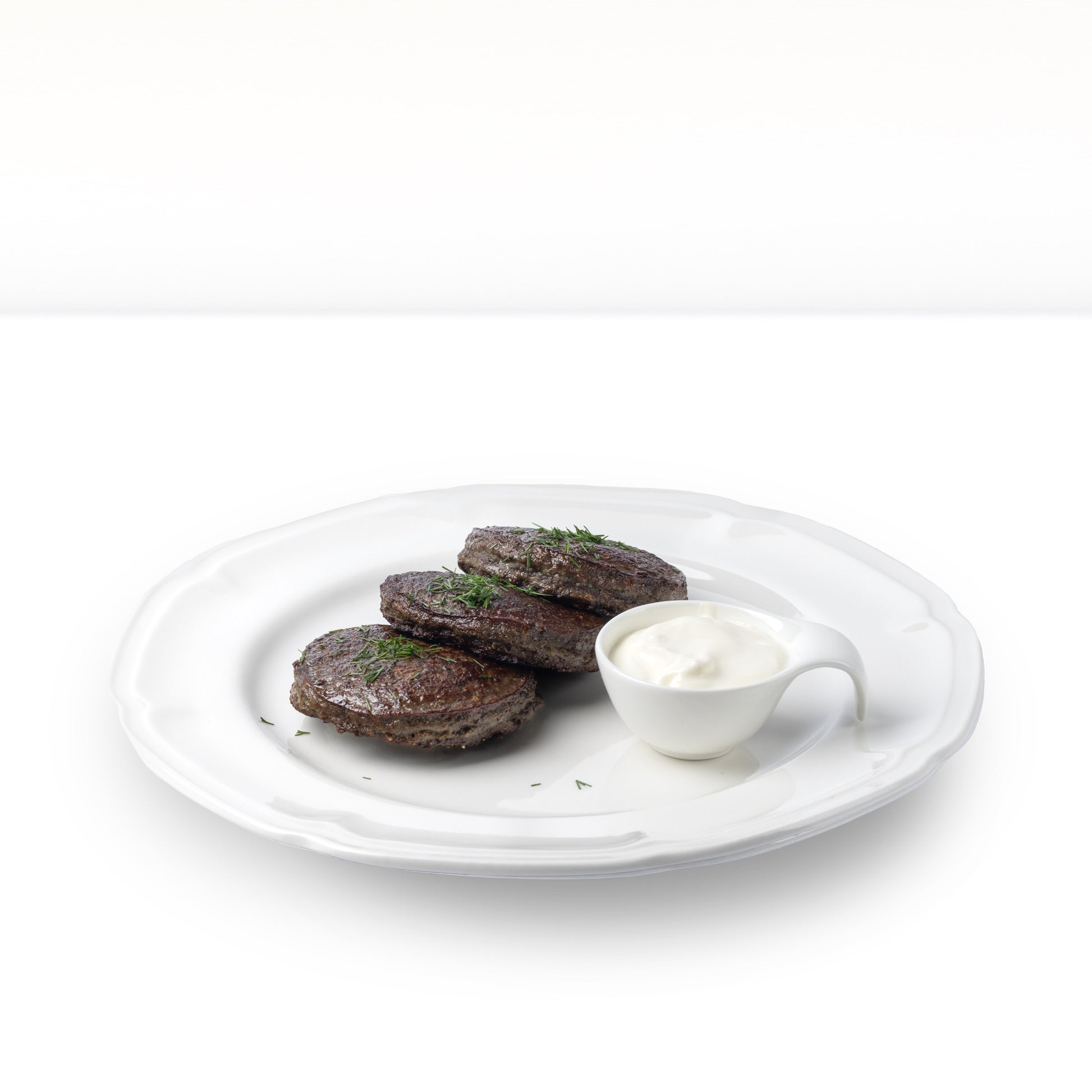 Zutaten: Rinderleber 70%, Zwiebel, Eier, Milch, Maismehl, Hartweizengrieß, Salz, Pfeffer, Gewürze