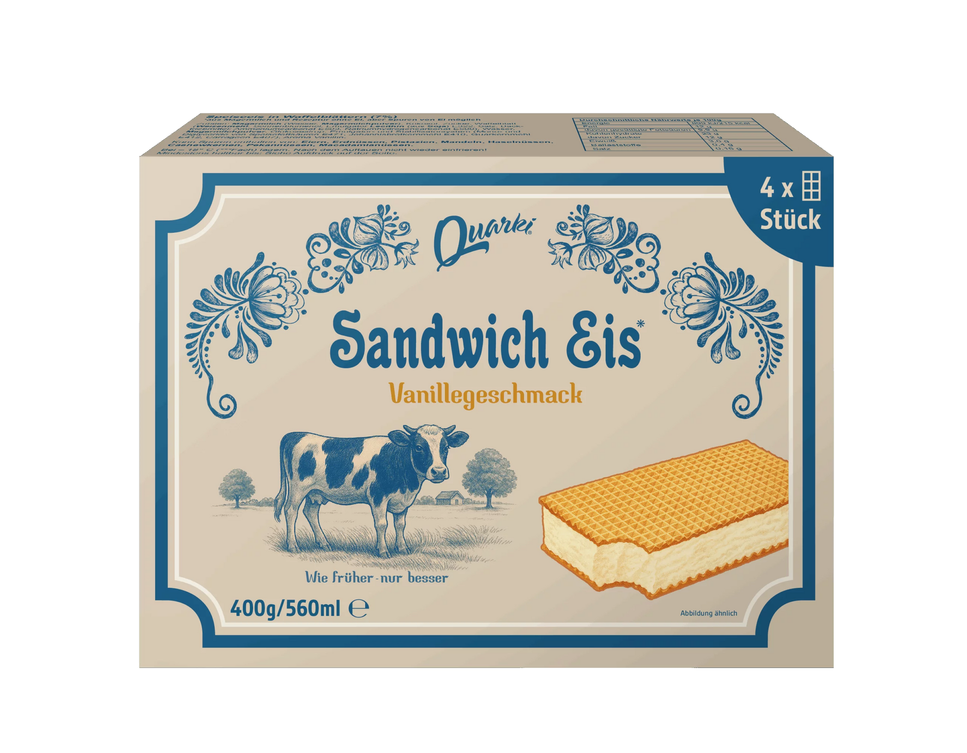 Sandwich Eis kombiniert zwei goldgelbe Waffelblätter mit zartschmelzendem Vanilleeis – für ein authentisches Geschmackserlebnis wie früher.