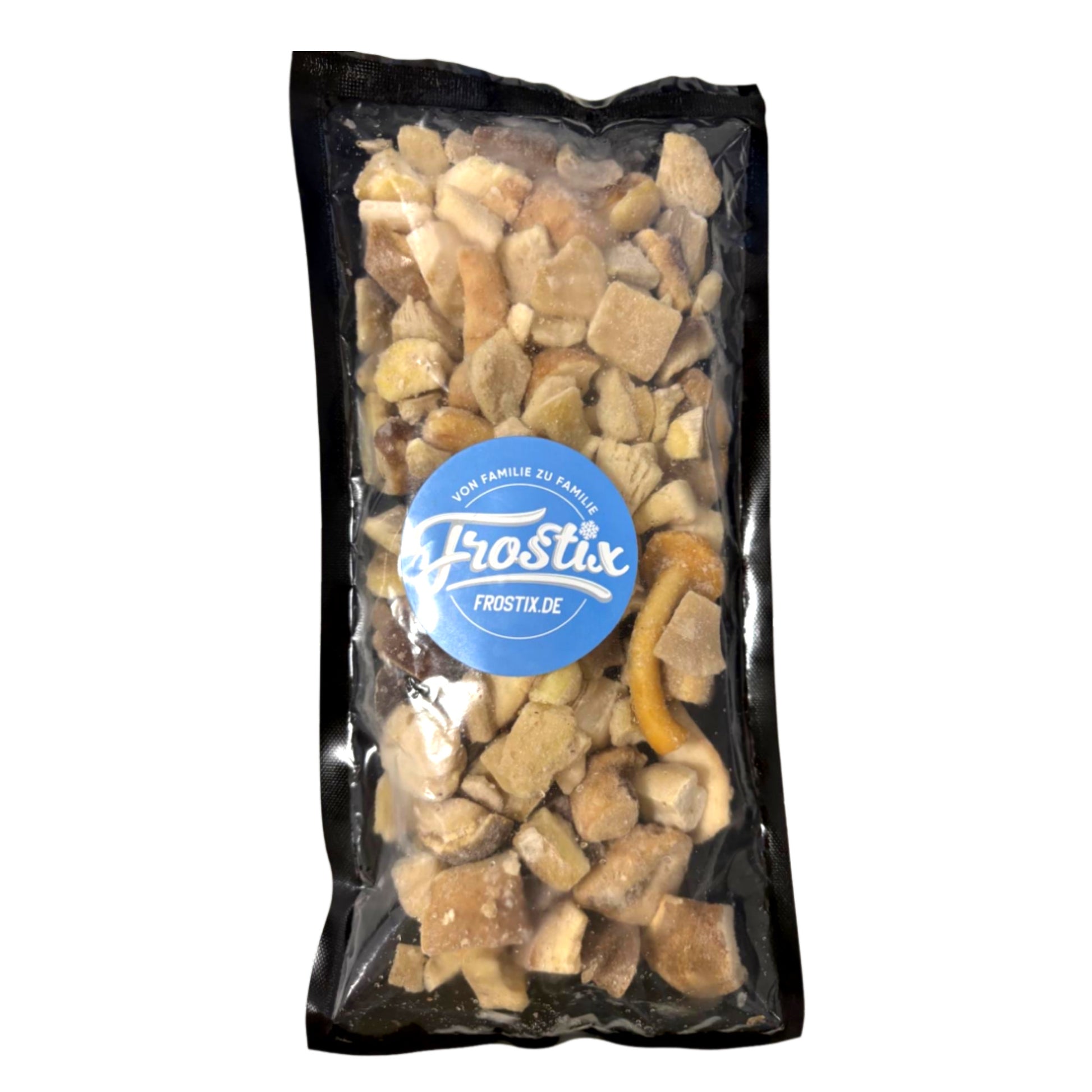 Zutaten: 30% Austernseitlinge, 20% Butterpilze, 20% Egerlinge, 10% Maronenröhrlinge, 10% Steinpilze, 10% Pfifferlinge.